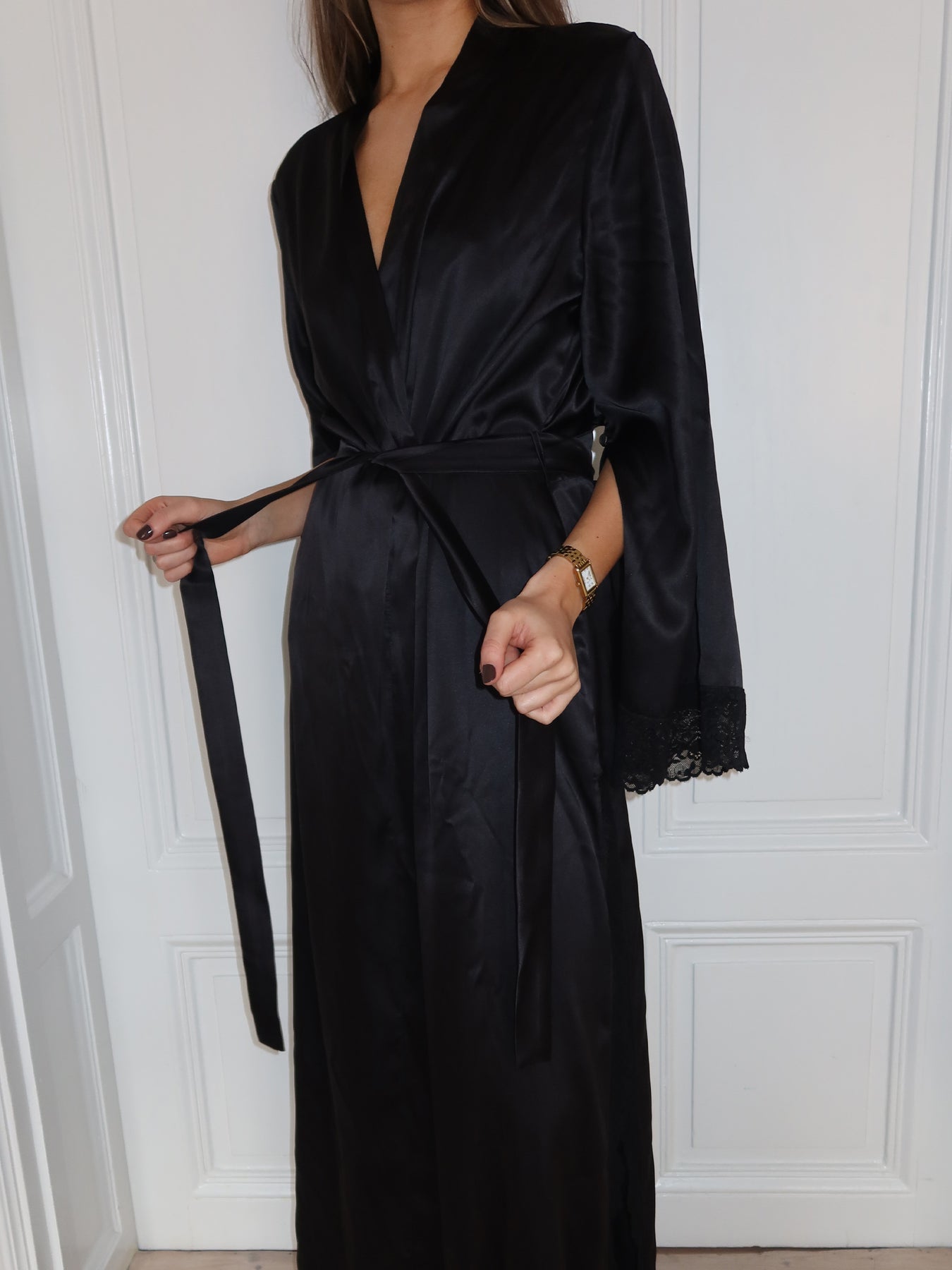 Indulge in pure luxury with our Silk Kimono in Liquorice Therapy.